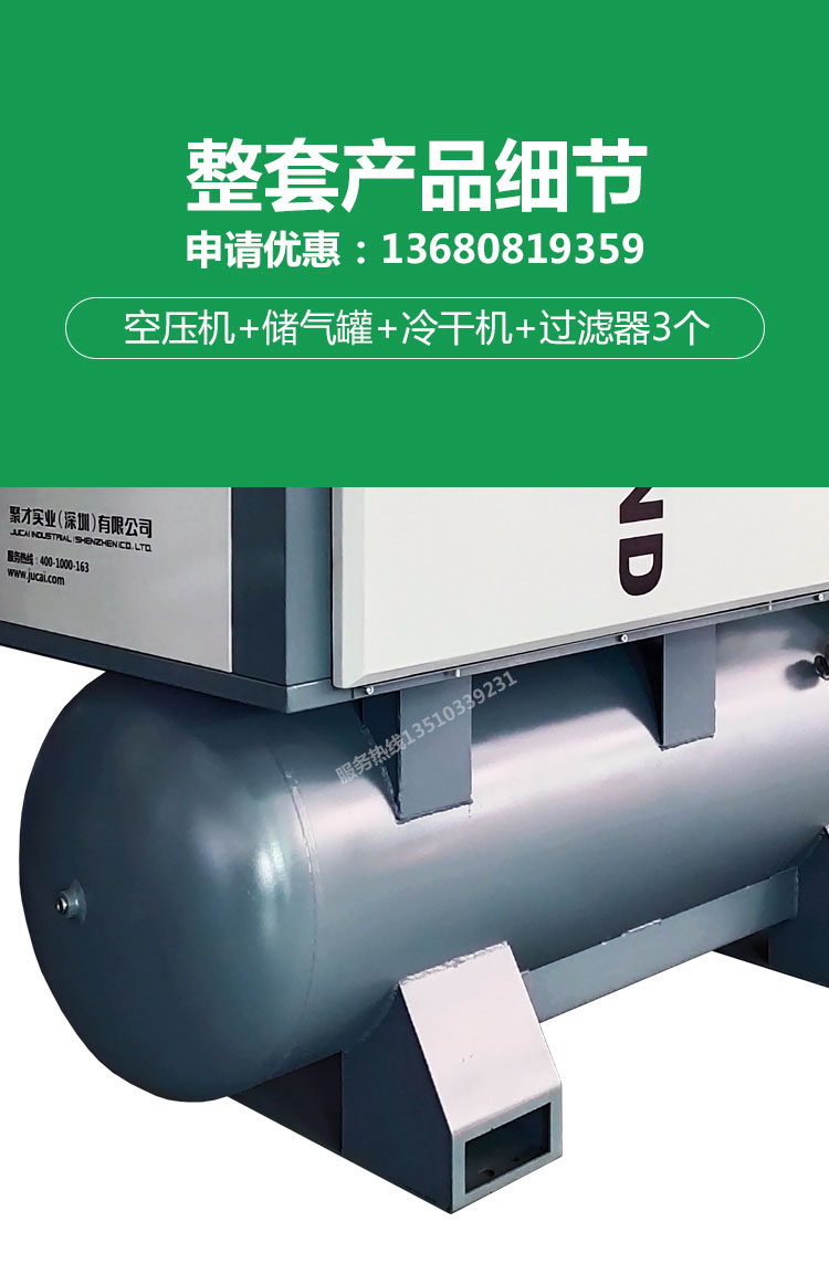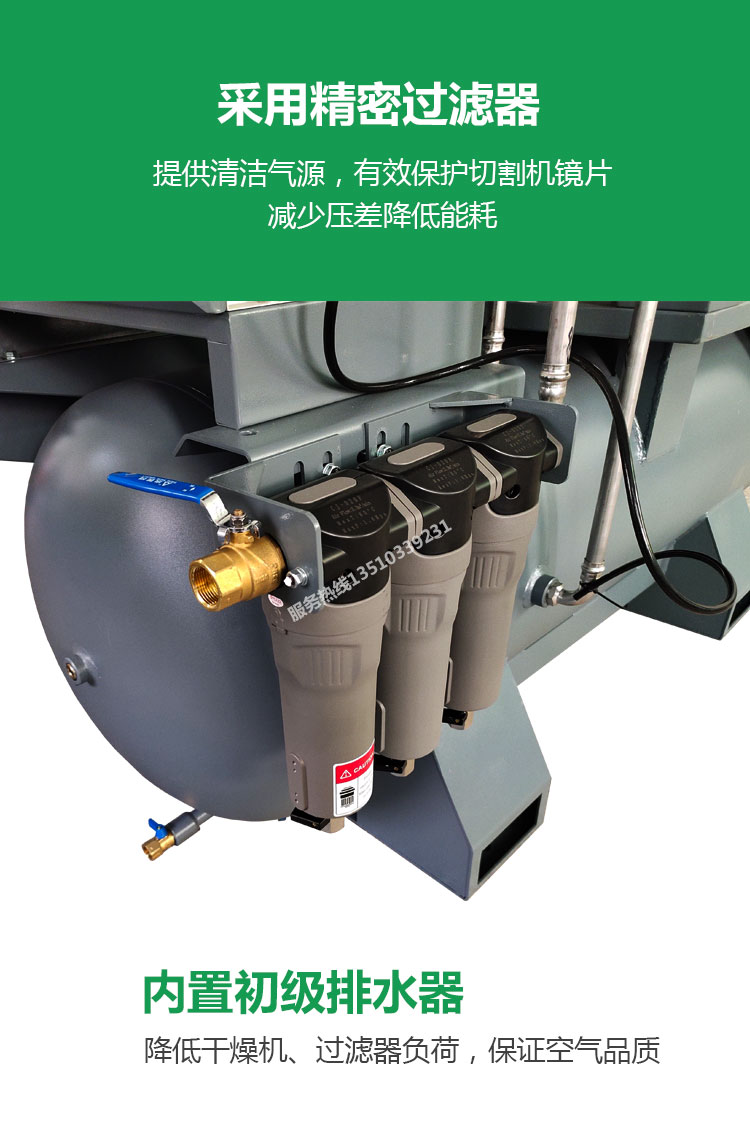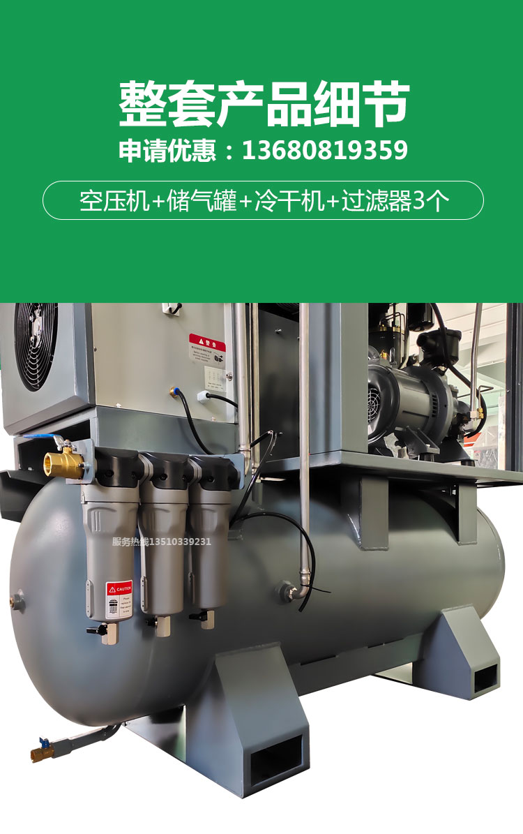 螺桿空壓機、冷凍式干燥機、過濾器、儲氣罐四合一,激光切割專用一體式空壓機