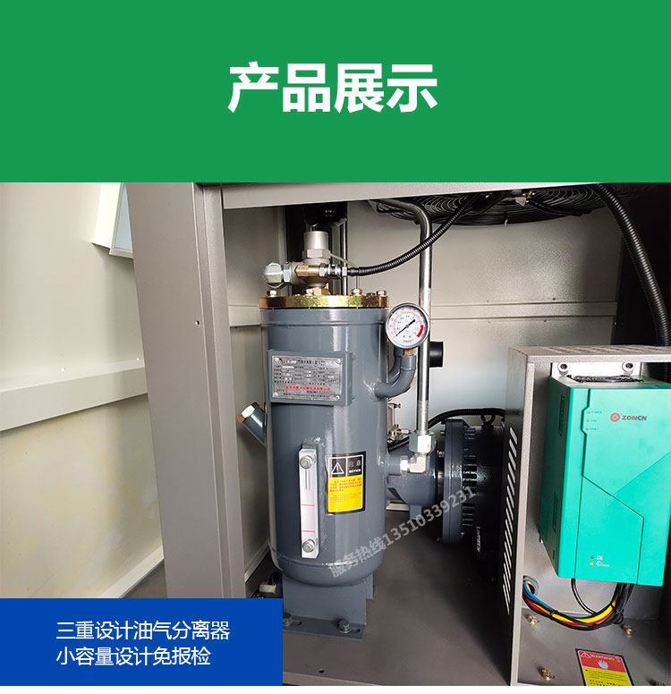 空壓機整機能效高于國家一級能效標準,每產一立方的氣比行業大部分機器用電量少,氣量足,比行業基準多10%,適應惡劣工況條件,按24小時滿載運行設計制造,將機械和電器完美融合。