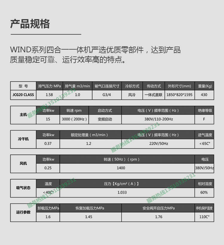 產品名稱:15kW激光專用一體式空壓機JCG20 CLASS